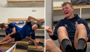 Slovenskí hokejisti v netradičných polohách: Skúšali párovú jógu a takto im to šlo!