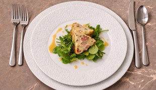 Údené kura s kimchi mac & cheese a pyré z kyslej mrkvy