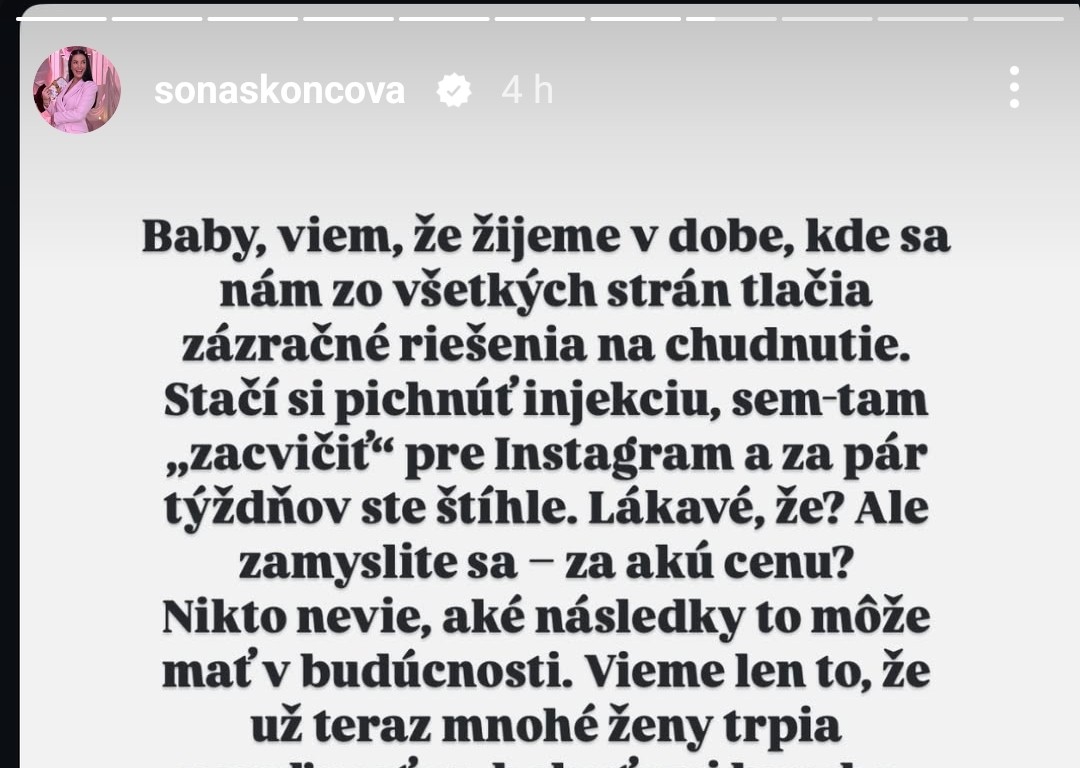 Soňa Skoncová varuje ženy, ktoré chudnú