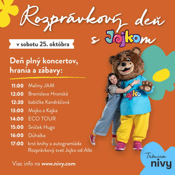 Nezabudnite, už v sobotu 25.10. môžete zažiť Rozprávkový deň s Jojkom na Nivách. Vstup je zadarmo!