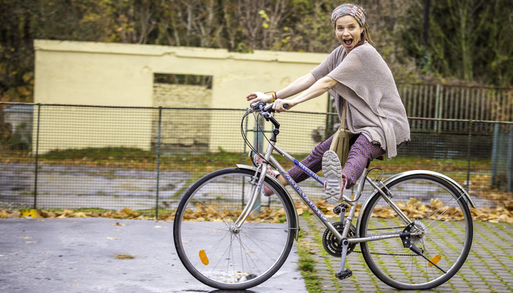 Alenka Ďuránová predvádza, že vie jazdiť na bicykli aj bez nôh: