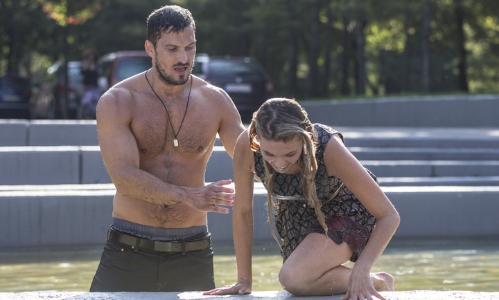 Janko Koleník pomáha Dominike Richterovej von z fontány: