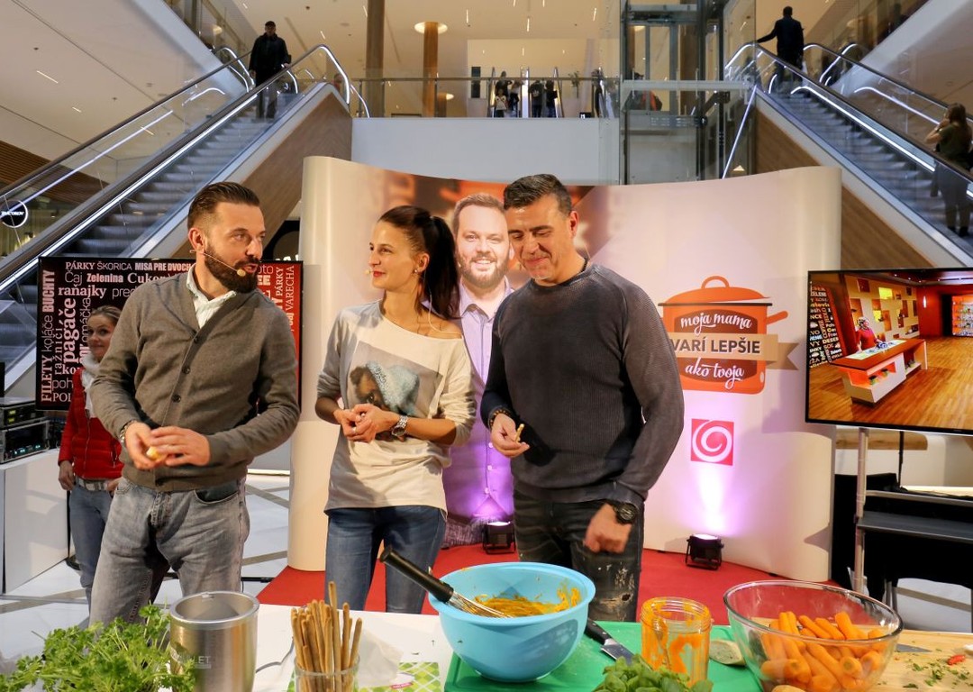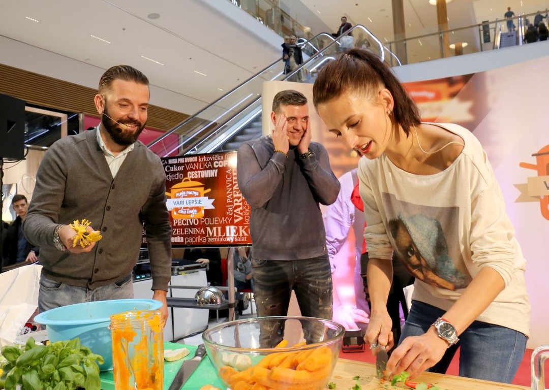 Štvrtkový večer sa v bratislavskom Auparku niesol v znamení hriešne dobrých nákupov, ale i skvelej popoludňajšej akcie s reláciou Moja mama varí lepšie ako tvoja. Okrem samotného kastingu a hľadania nových tvárí ste mali možnosť vidieť aj naše najnovšie hviezdy Tomáša a Mišku, ktorí si krátko po vypadnutí v relácii vyskúšali ďalšie súťaženie s prípravou mrkvovej nátierky na čas. V dueli sa proti nim postavila ďalšia známa tvár, Mai Linh, ktorú tento raz dirigovala sesternica. Obe sa zároveň zúčastnili kastingu, a tak o nich pravdepodobne ešte budeme počuť aj v Mojej mame.