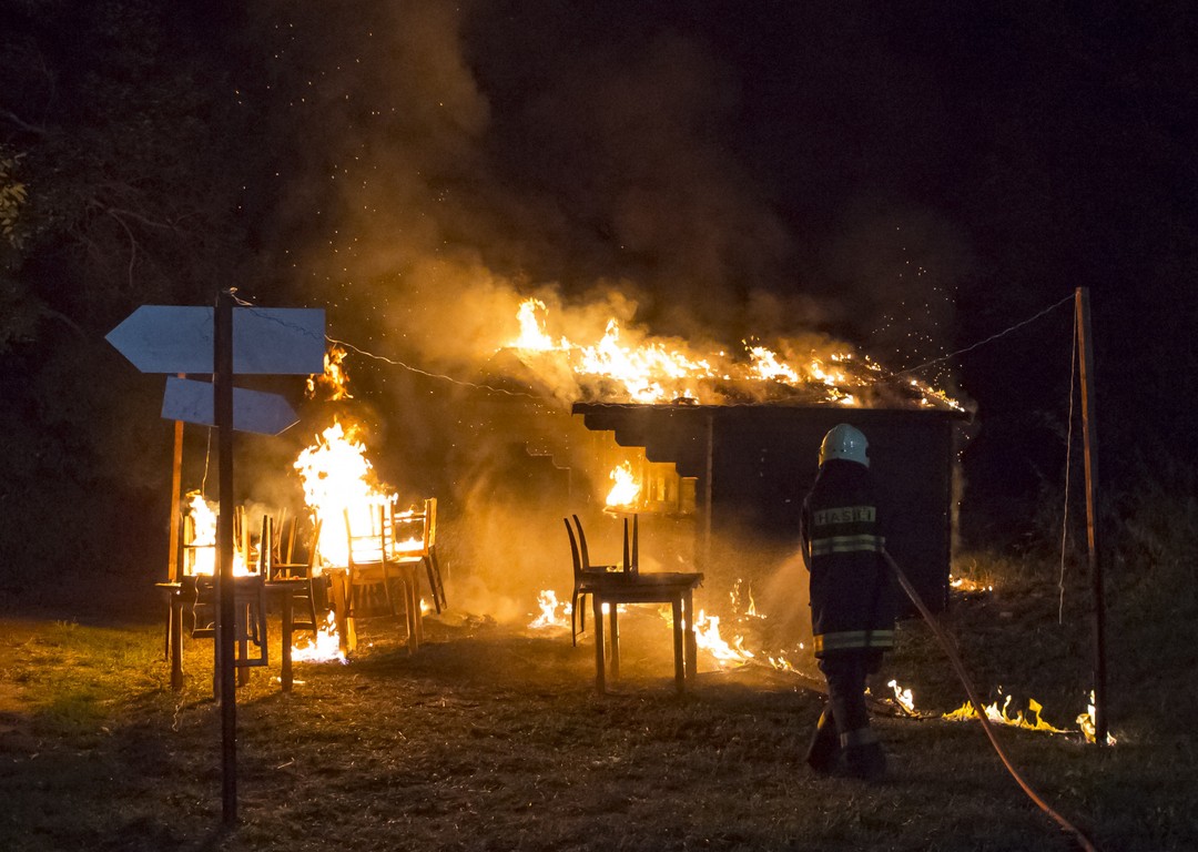 Na pľaci boli prítomní aj takzvaní „efektári“. Na nakrúcaní sa tak hovorí ľuďom, ktorí sú zodpovední za špeciálne efekty. Nesmeli chýbať ani požiarnici, konkrétne to boli hasiči zo stanice v Budmericiach. Tí napokon zahasili spúšť, ktorá vznikla na nakrúcaní. V tejto scéne si mal Richard Stanke omylom podpáliť rukáv. Prípravy na „ostrú“ museli byť mimoriadne precízne. Pod oblečenie mu museli dali silné vrstvy azbestu, aby sa nespálil. Rukáv mu napustili prchavou horiacou látkou, aby sa rukáv dal ľahšie zapáliť. Nakrúcanie tejto scény bolo extrémne nebezpečné, adrenalínové a nesmelo sa nič zanedbať. Šlo o veľa. Pozrite si scénu s požiarom ešte raz v priloženom videu!