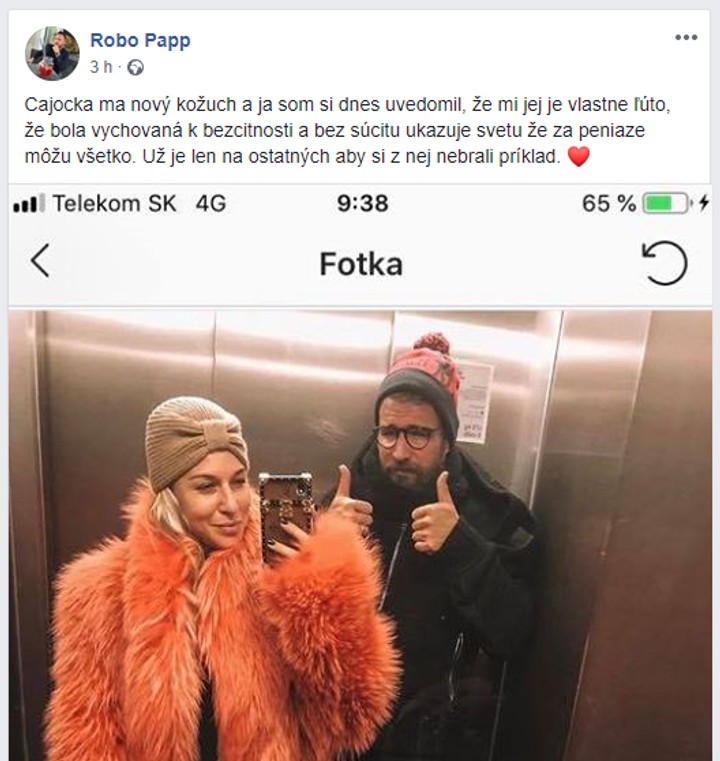 Najnovšie sa však tvrdo vyjadril k jej luxusnej (a podľa mnohých aj nehumánnej) záľube známy spevák Robo Papp. Na svojom profile na sociálnej sieti jej adresoval odkaz, pri ktorom si nedával servítku pred ústa. „Čajočka má nový kožuch a ja som si dnes uvedomil, že mi jej je vlastne ľúto, že bola vychovaná k bezcitnosti a bez súcitu ukazuje svetu, že za peniaze môže všetko. Už je len na ostatných, aby si z nej nebrali príklad,“ napísal k jej fotke. Zdá sa však, že samotná Dominika si z hejtov na jej osobu ťažkú hlavu nerobí. Pri danej fotke si na Instagrame vypla komentovanie a aj vo svojich vyjadreniach dáva jasne najavo, čo si o kritike kožuchov myslí. „Je o mne známe, že mám rada kožuchy dlhé roky. Myslím si, že mám právo voľby, páčil sa mi, tak som si ho zaobstarala. Paradoxne mám kamarátku z odboru ochrancov zvierat a ani tá to takto nevnímala. Nemám rada, keď mi niekto diktuje, čo mám robiť a čo nemám,“ povedala pred časom. Nuž, proti gustu...