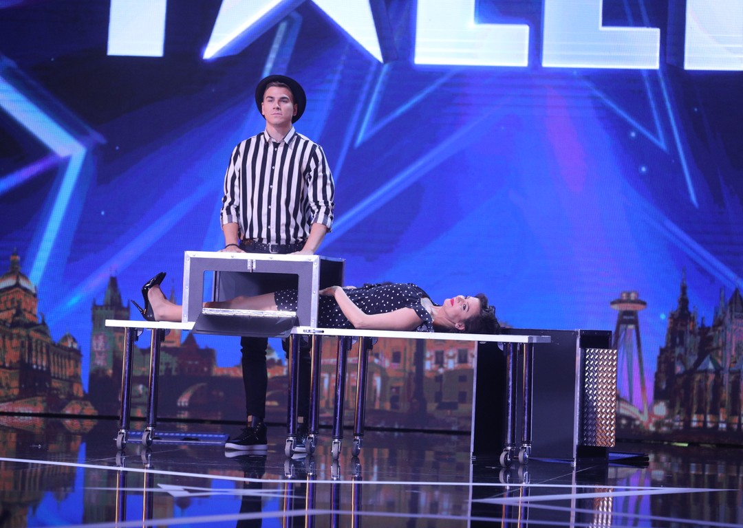 Štartu novej série obľúbenej šou Česko Slovensko má talent vždy predchádza veľká a výpravná upútavka, v ktorej si hlavnú úlohu zahrajú moderátori a porotcovia. Výnimkou nebude ani tento ročník. Najprv sme vám v rámci štyroch videí ukázali, na čo má talent porota. A teraz vám ukážeme, čo dokážu naši moderátori! Čerstvý ženáč David Gránsky sa v upútavke premenil na kúzelníka a Lujza Garajová Schrameková na jeho šarmantnú asistentku. Pointou celého videa je, že tmavovláska vlezie do kúzelníckej škatule a David ju rozreže na dve polovice. Čo v upútavke, samozrejme, neprežije. Dramatickú situáciu ale napokon zachráni Marta a jej superschopnosť hýbať na diaľku predmetmi. Lujzu spojí naspäť dokopy a Talent sa môže začať! Pozrite si to na vlastné oči v priloženom videu!