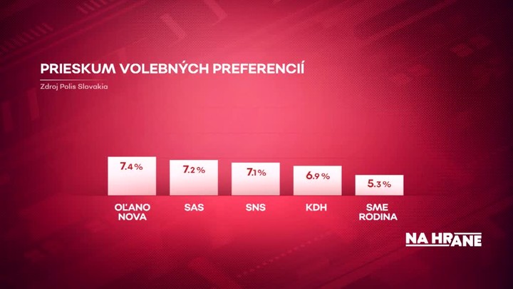 Za ňou by sa umiestnilo OĽANO so 7,4 percentami, SaS so 7,2 percentami, strana SNS, ktorá by získala 7,1 percenta, Hlinova KDH so 6,9 percentami a do parlamentu by sa dostalo aj hnutie Sme rodina - Boris Kollár s 5,3 percentami.