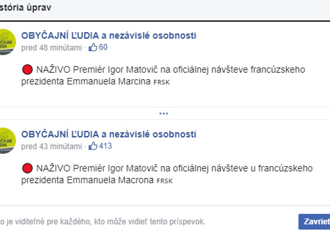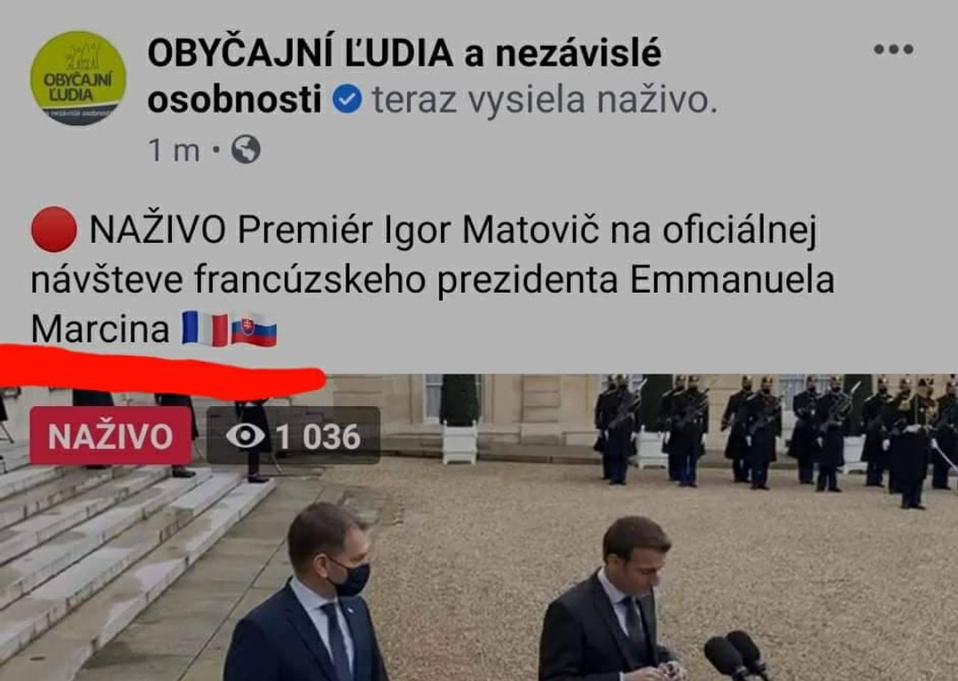 Živé vysielanie pre divákov svojej facebookovej stránky uviedol tím obyčajných ľudí namiesto oficiálnej návštevy Matoviča u Emmanuela Macrona ako "Premiér Igor Matovič na oficiálnej návšteve francúzskeho prezidenta Emmanuela Marcina".