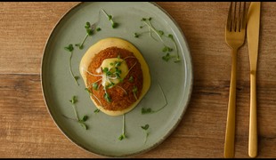 Bravčová panenka s pečenými zemiakmi a syrovou omáčkou