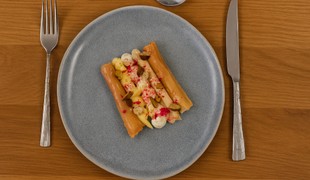 Roláda z kačacích pŕs s pistáciami a kapustou a šišky