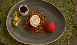 Panna cotta s karamelizovaným ovocím a omáčkou/zmrzlinou