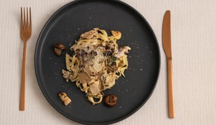 Domáce fettuccine so syrom cottage a hríbmi